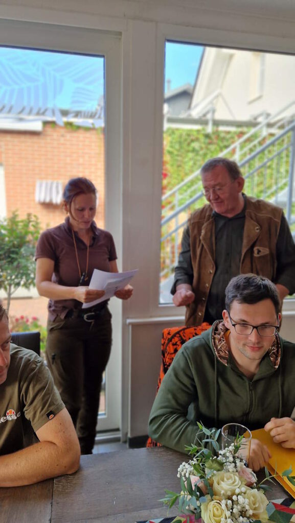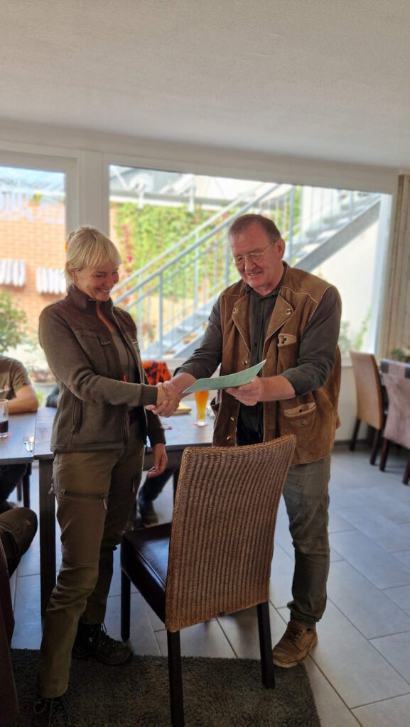 Erfolgreiches Prüfungswochenende: Alle Gespanne haben die VGP im I. Preis bestanden. Anke und DD Pegasus vom Haus Heßling mit 336P, Christine und DK Jasper v. d. Moorheide mit 334P, Anke und Slow. Rauhbart Denver v. Forsthaus Hubertus mit 334P und „Schülerin“ Ines und Slow. Rauhbart Amie vom Schweinsgräbchen mit 333P. Ein Dank auch die Richter und Revierführer!