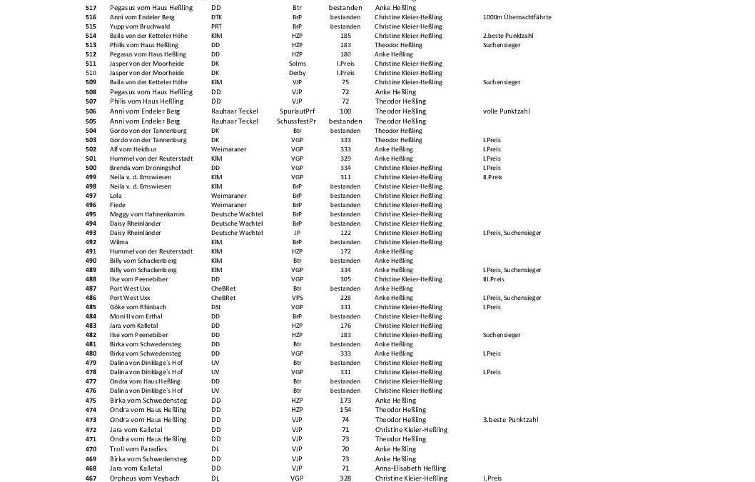 Prüfungsübersicht_Homepage-Jagdhunde von Torsten Schrader | 1.Apr. 2026 Prüfungsübersicht der Jagdhunde Hessling